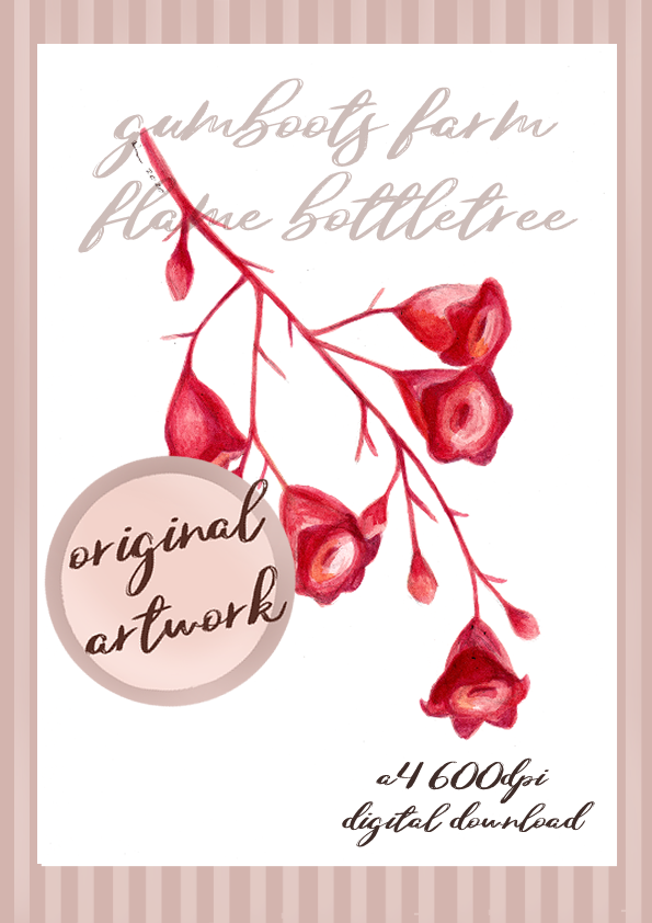 The fifth of my Australian Flora series, handcrafted with high quality inks, and then scanned in my own studio.